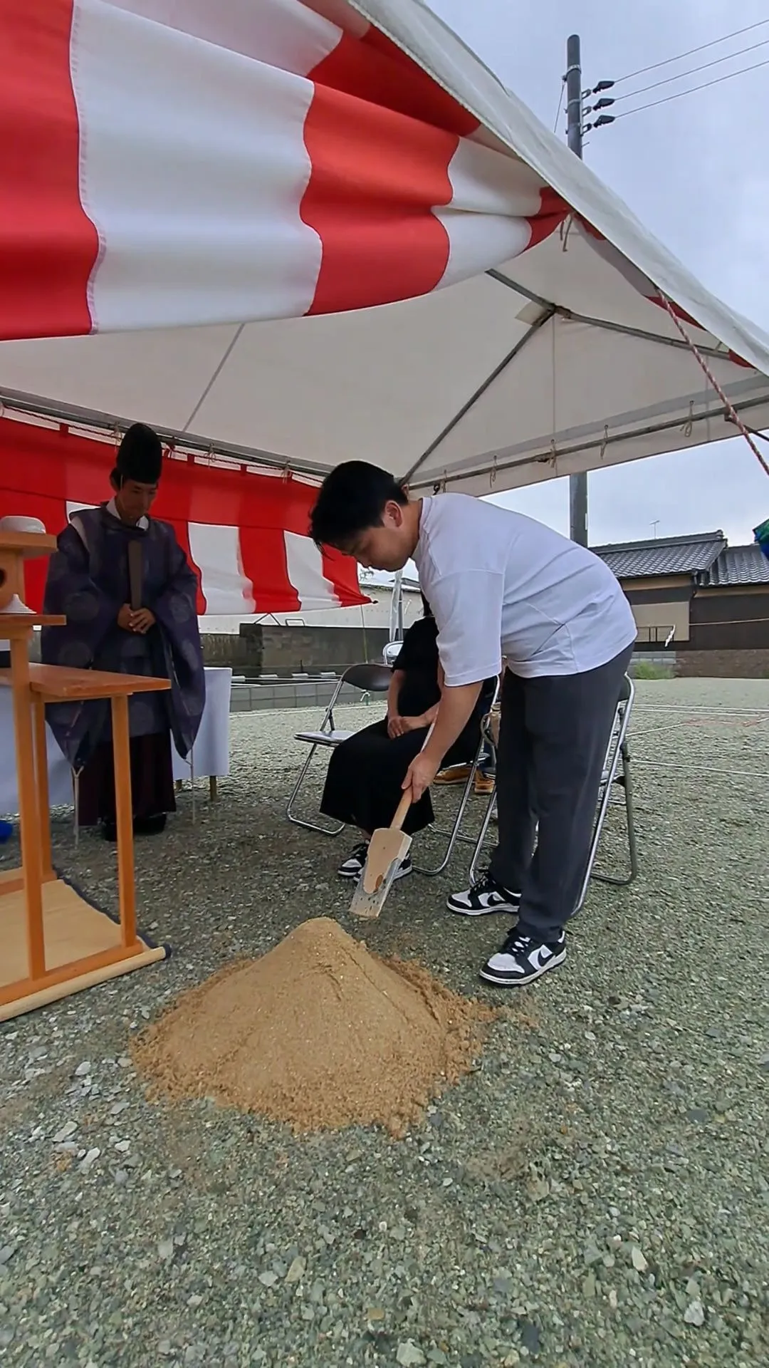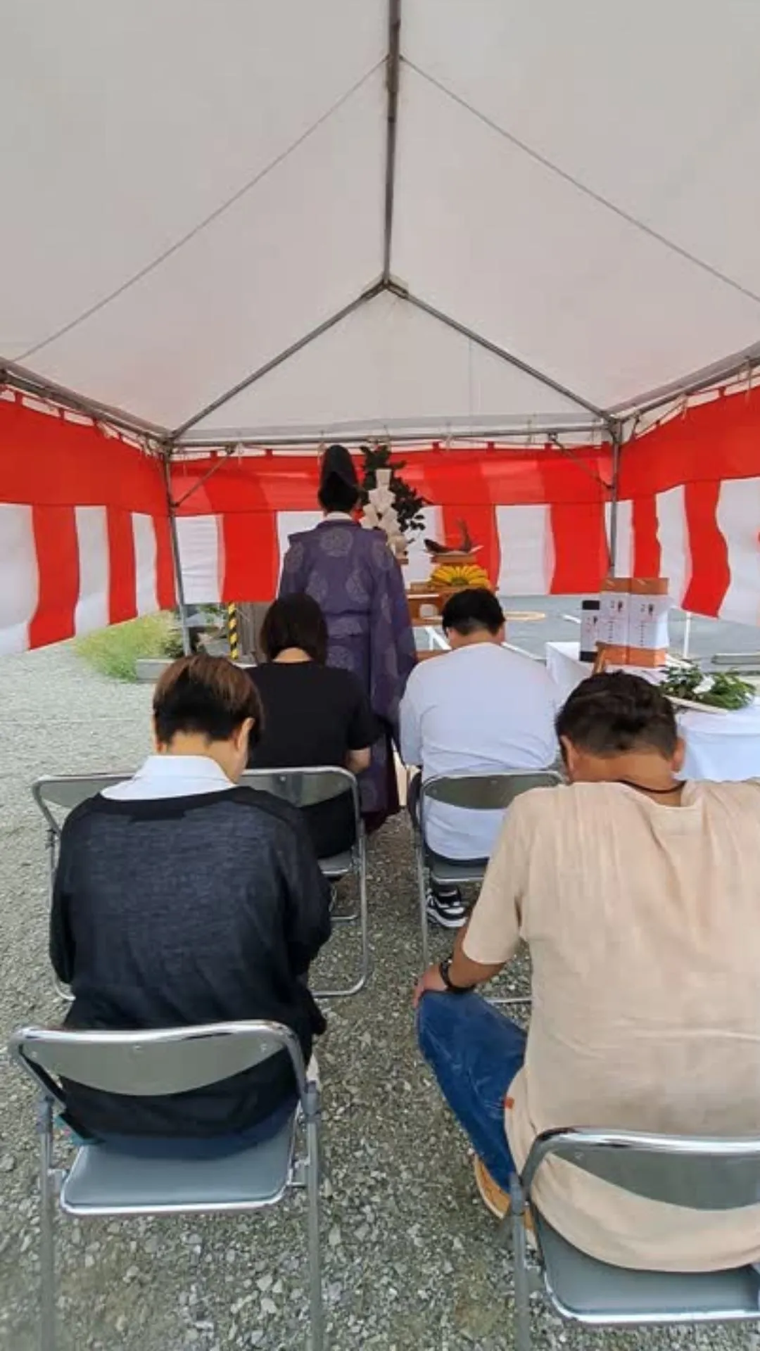 先日、加古川市で新しい住まいの地鎮祭を執り行いました。小雨の降る中、お施主様ご夫妻とおなかの赤ちゃん、設計士、弊社代表が出席し、工事の安全と家族の繁栄を祈願しました。